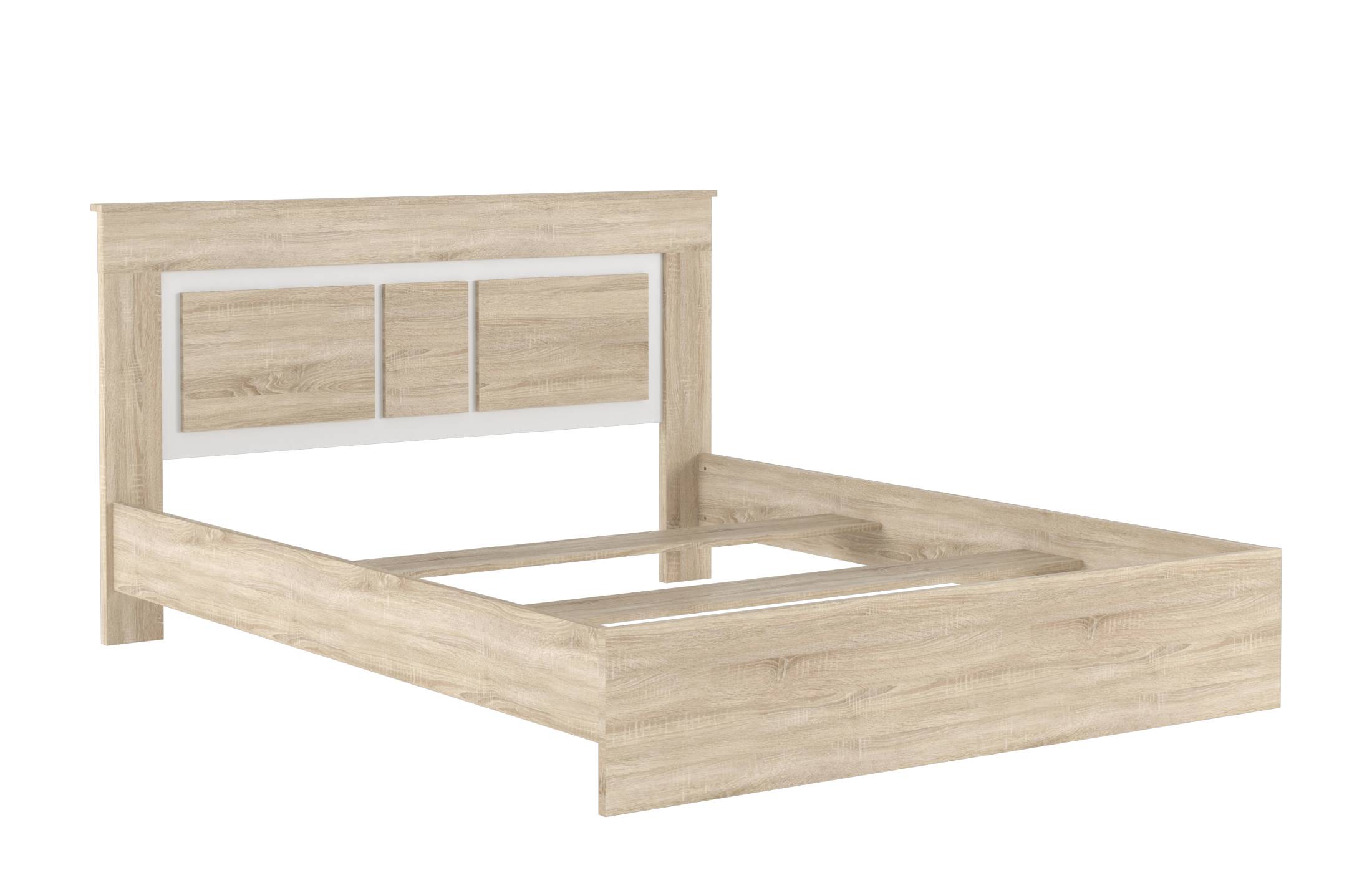 Каркас имеет лаконичный дизайн с массивными боковинами и декоративными вставками контрастного оттенка, что придаёт мебели строгую геометрию и современный стиль. Для дополнительного удобства кровать комплектуется основанием размером 160×200×28 см, а матрас подбирается отдельно, что позволяет выбрать оптимальный уровень комфорта.