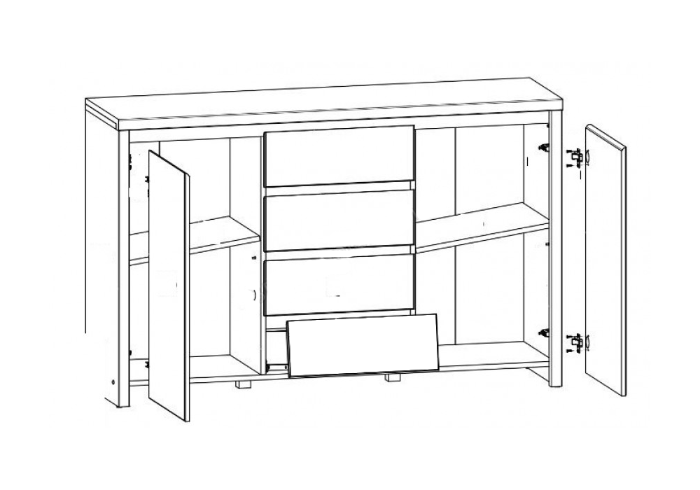 Комод Каспиан KOM 2D4S БРВ — функциональный и стильный элемент системы Каспиан от фабрики БРВ Украина. Изготовлен из ламинированной ДСП в сочетании цветов дуб сонома и кашемир, так же доступны дуб сонома или дуб милано темный/белый снег. Оснащён двумя дверцами и четырьмя ящиками на роликовых направляющих, внутри полки. Дизайн — лаконичный, без ручек. Комод комплектуется австрийской фурнитурой Hettich.