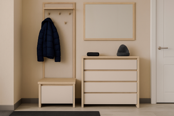 - Тумба для обуви SBUT60 — компактное хранение с верхней полкой для посадки;