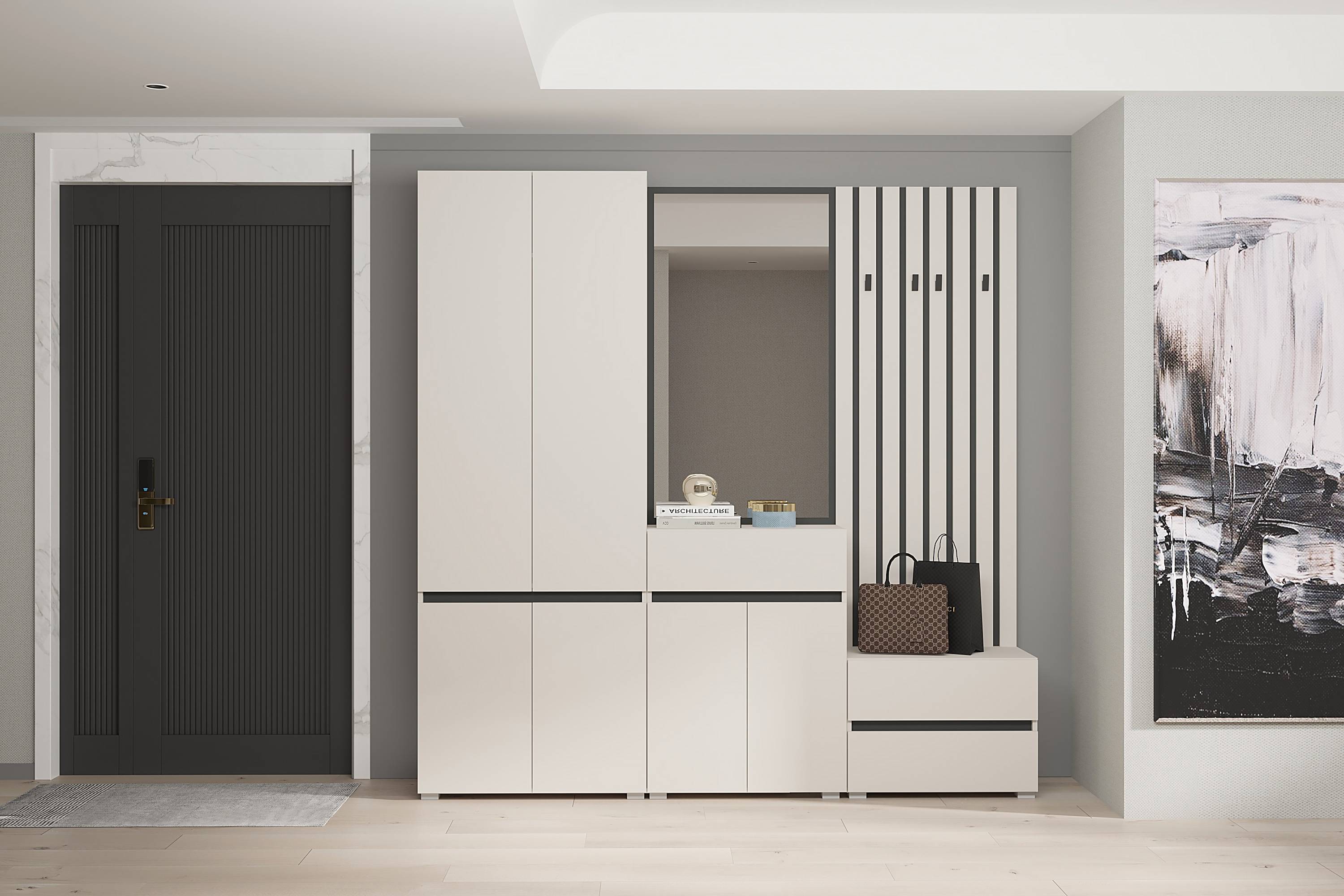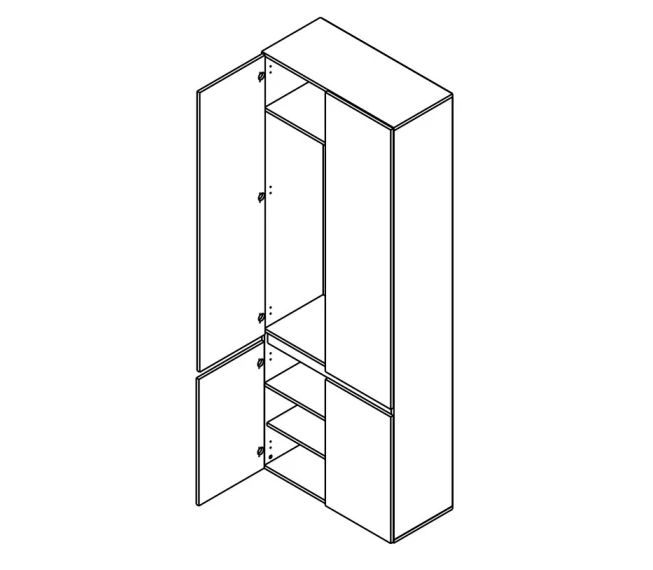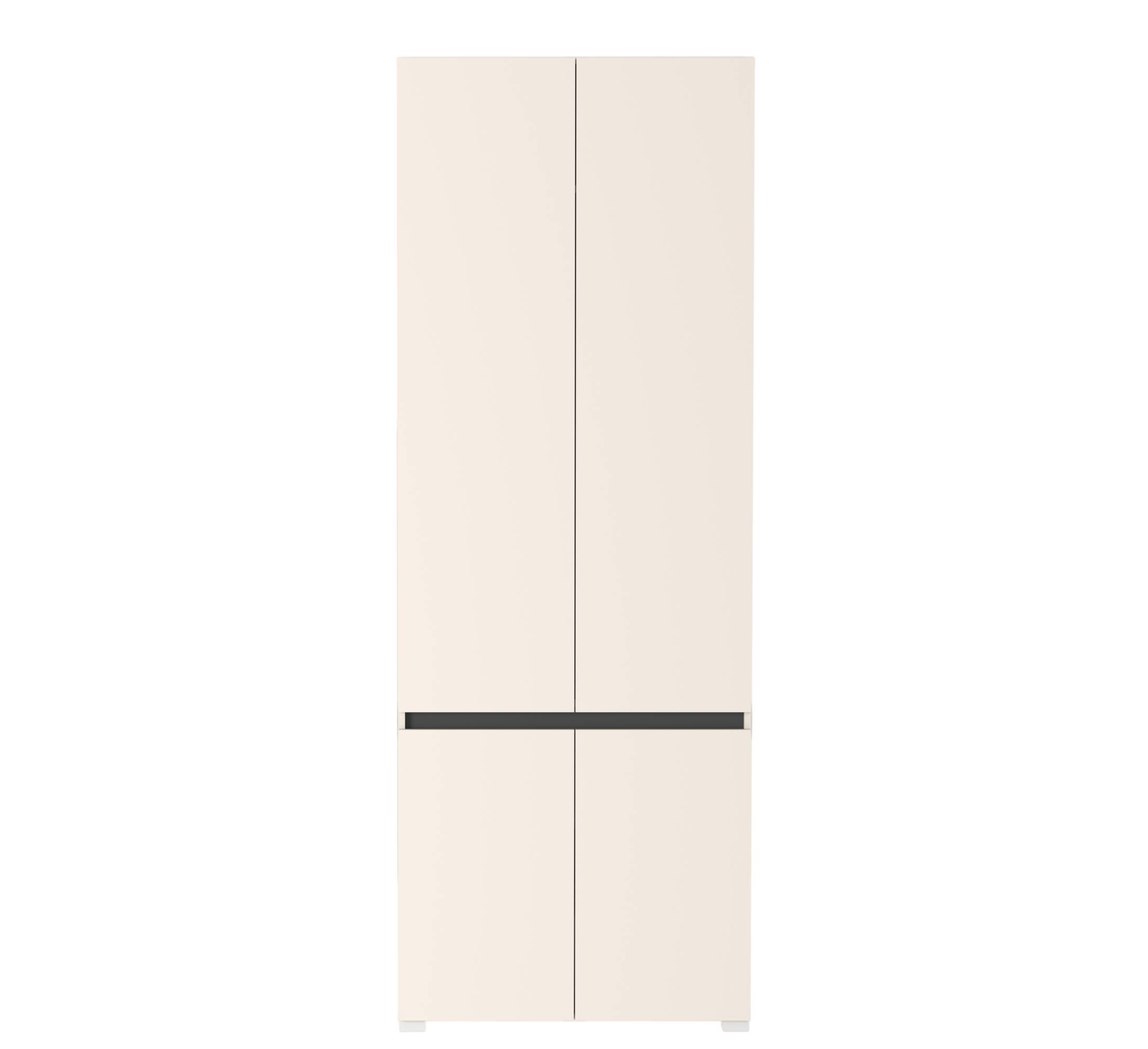 Шкаф Лондон SZF4D Гербор – четырёхдверная модель из модульной системы Лондон от фабрики Гербор Изготовлен из ламинированной ДСП толщиной 16 мм в сочетании цветов кашемир и антрацит. Задняя стенка выполнена из серого ДВП толщиной 3 мм. За верхними дверями расположены полка и выдвижная штанга для одежды, в нижнем отделении – две удобные полки для хранения. Используются качественные петли SLIDE-ON HETTICH. Шкаф отличается прямыми формами, гладкими фасадами без ручек и пластиковыми ножками EteraPlast, что подчёркивает современный минималистичный стиль коллекции Лондон.