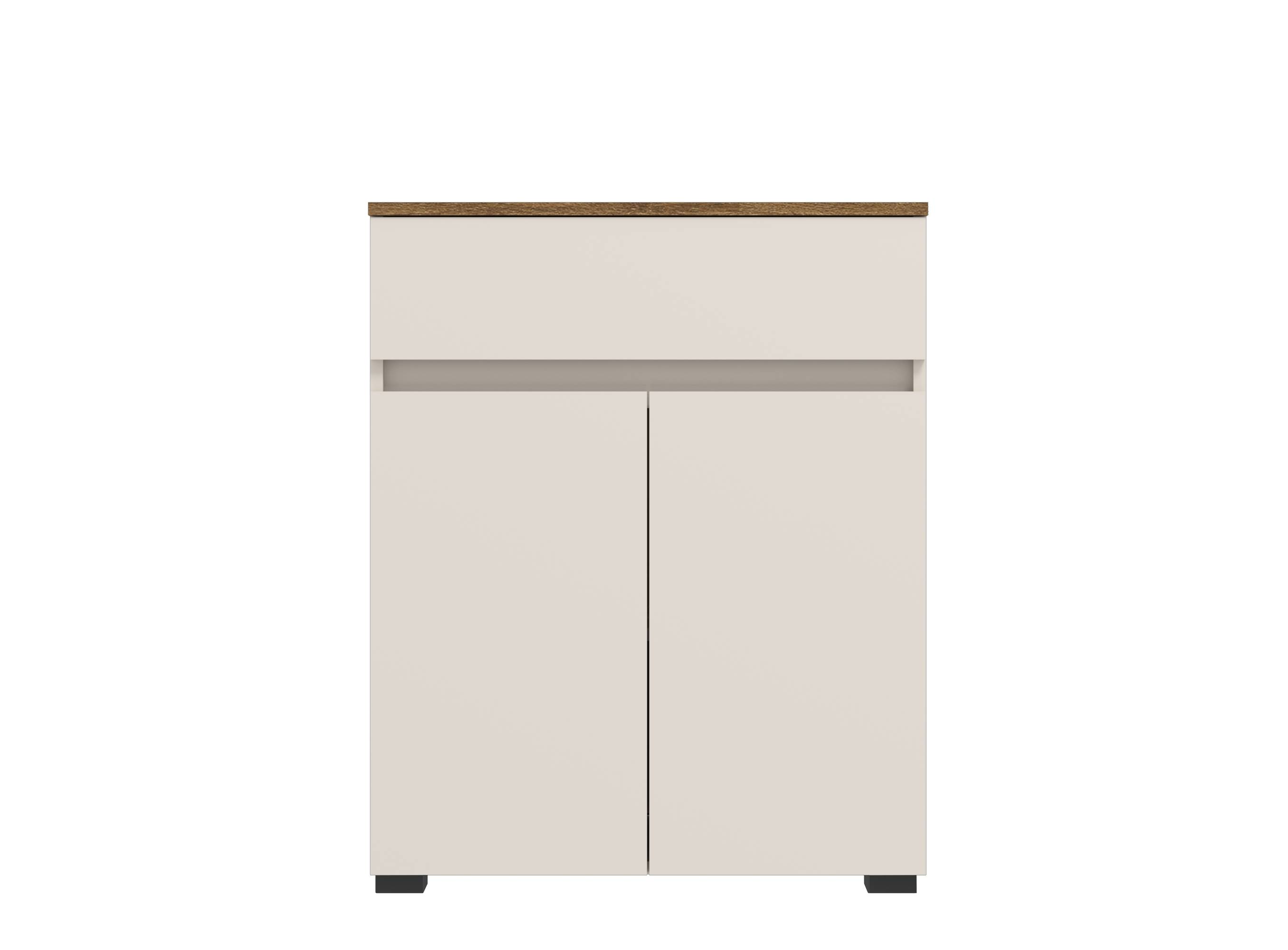 Тумба Анси KOM2D1S Гербор — функциональный элемент модульной системы Анси, выполненный в стильном сочетании кашемир / дуб травиата. Корпус из ламинированной ДСП толщиной 16 мм отличается прочностью и устойчивостью к износу. Задняя стенка и дно выдвижного ящика изготовлены из ДВП толщиной 3 мм. Модель оснащена двумя дверцами, за которыми расположена полка, а также выдвижным ящиком на шариковых направляющих полного выдвижения HAFELE. Петли SLIDE-ON HETTICH обеспечивают плавное и надежное открывание. Максимальная нагрузка на столешницу — до 10 кг. Дизайн тумбы подчеркивают светлые матовые фасады в сочетании с текстурой натурального дерева, лаконичные геометрические формы, пластиковые опоры EteraPlast SCHWIN и отсутствие ручек, что делает модель идеальной для интерьеров в современном минималистичном стиле.