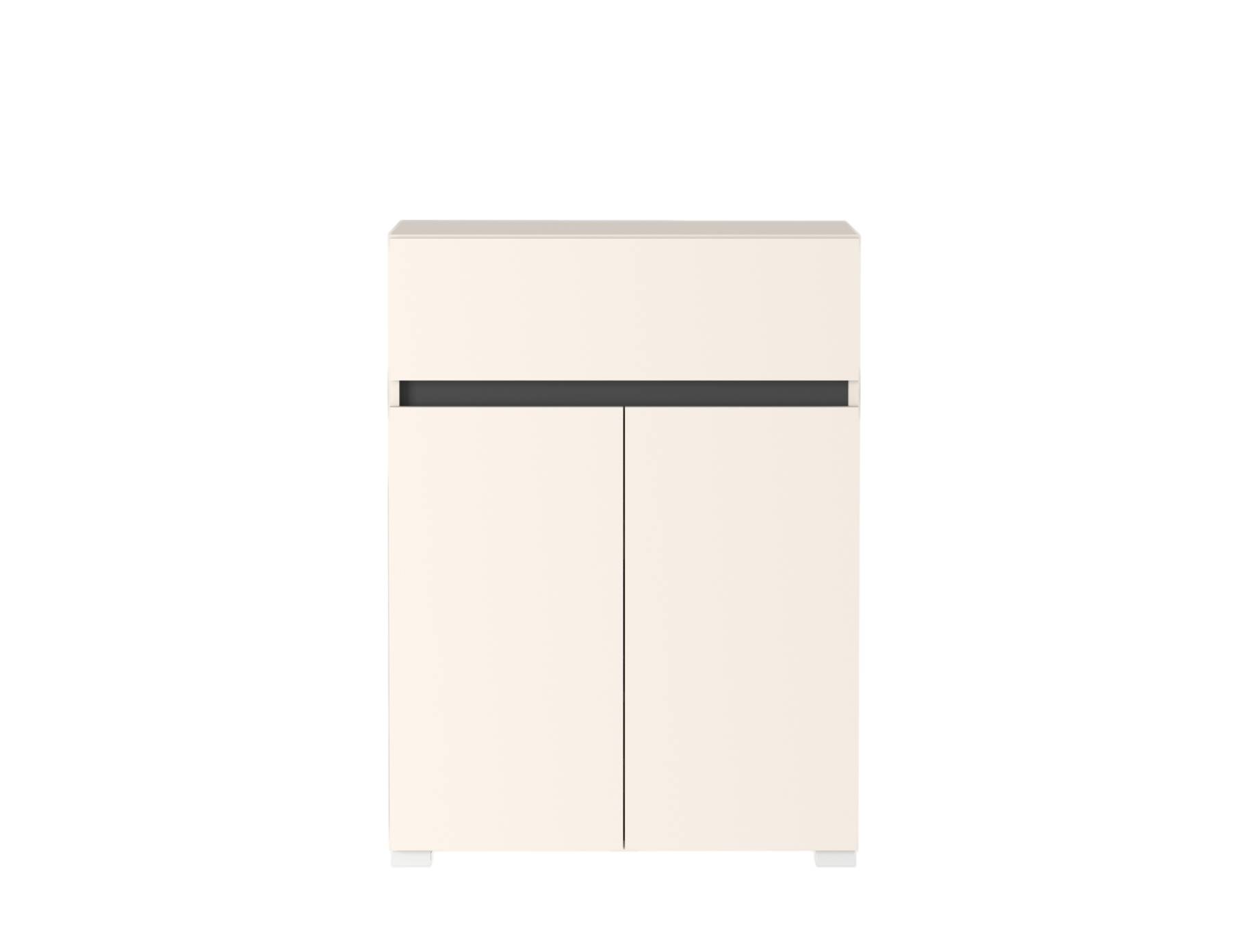 Тумба Лондон KOM2D1S Гербор – двухдверная модель с выдвижным ящиком из модульной системы Лондон от фабрики Гербор. Изготовлена из ламинированной ДСП толщиной 16 мм в цветах кашемир и антрацит. Задняя стенка и дно ящика выполнены из серого ДВП толщиной 3 мм. Внутри закрытого отделения размещены две полки для удобного хранения. Ящик оснащён шариковыми направляющими полного выдвижения HAFELE, двери – петлями SLIDE-ON HETTICH. Тумба отличается прямыми линиями, гладкими фасадами без ручек и пластиковыми ножками EteraPlast, подчёркивающими минималистичный стиль коллекции Лондон.