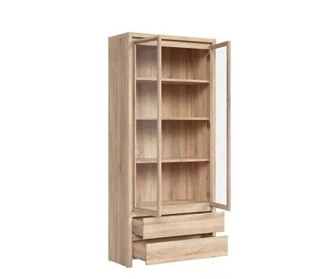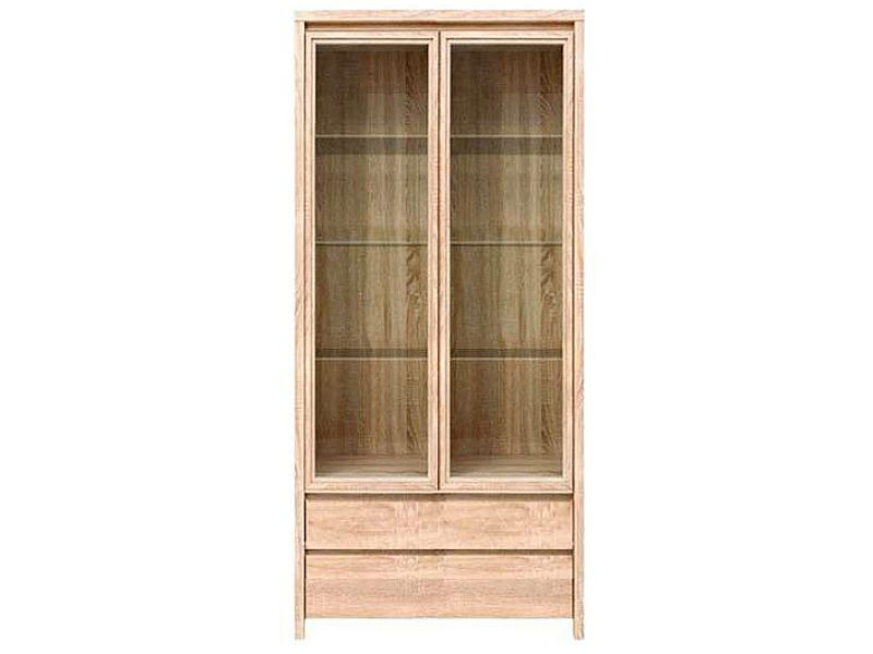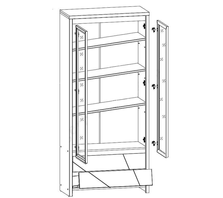 Витрина Каспиан REG2W2S БРВ — стильный элемент модульной коллекции Каспиан от украинского производителя БРВ. Модель выполнена в контрастном и выразительном цветовом решении венге магия / белый снег, которое придаёт интерьеру лёгкость и элегантность или доступны другие варианты цветов - дуб сонома или дуб сонома/кашемир. За стеклянными фасадами на дверцах размещены три полки для демонстрации предметов, а в нижней части предусмотрены две выдвижные ящика на шариковых направляющих полного выдвижения Hettich. Фасады украшены геометрическими фрезеровками и не имеют привычных ручек, подчёркивая современный дизайн. Габариты: 90×200,5×40,5 см.